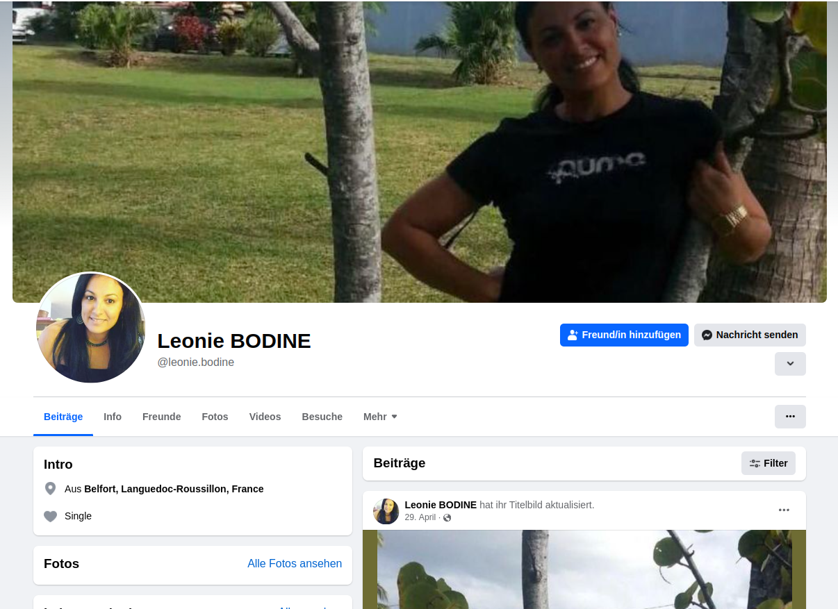 Das Profil von Leonie Bodine entpuppt sich als Fake, denn das Profilbild wird mehrfach in Internet verwendet und immer wieder mit neuen Namen belegt. Man darf getrost einen großen Bogen um dieses Wischiwaschiprofil machen.