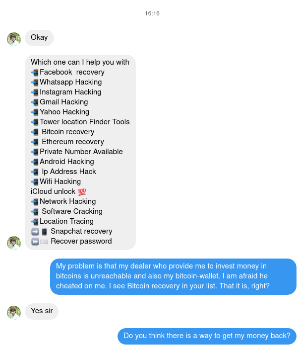 Ein weiterer Held namens James mike am Sternenhimmel der Recovery-Hacker. Er hatte zuvor versucht, mich telefonisch zu erreichen. Zum Glück funktioniert das mit der Desktopversion von Instagram nicht.